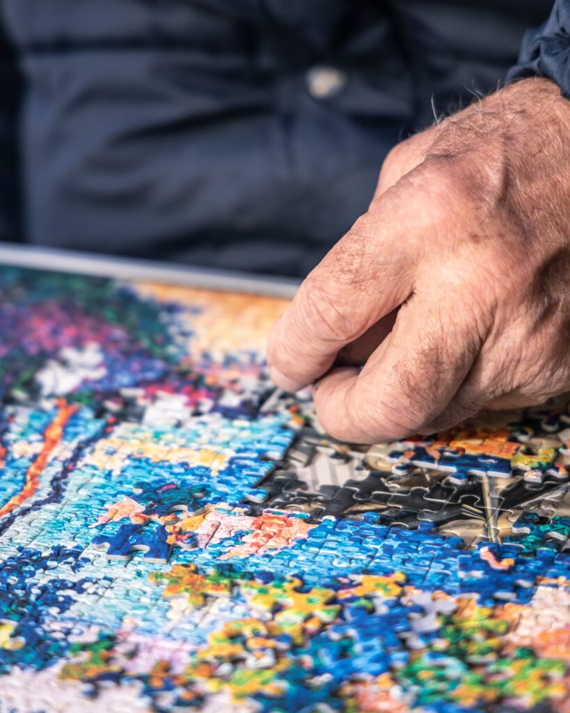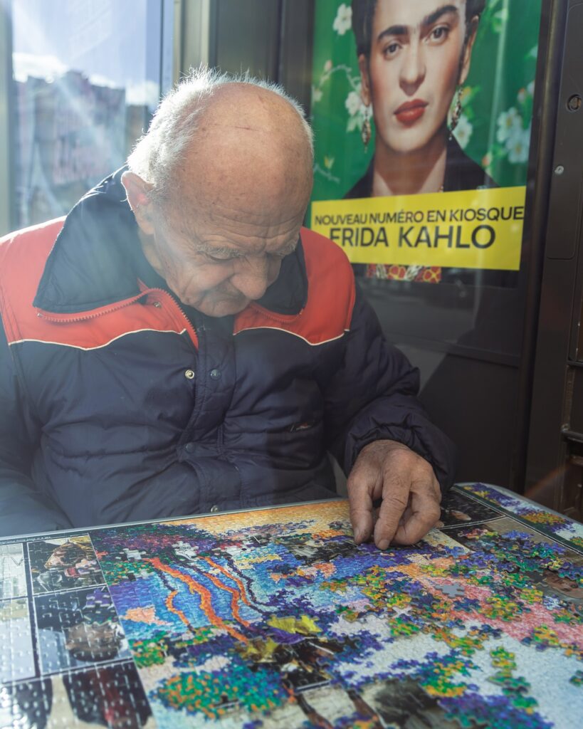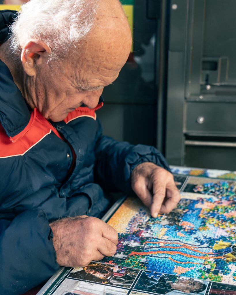 Τον πλησίασα με δισταγμό και τον ρώτησα ευγενικά αν θα μπορούσα να τον τραβήξω μια φωτογραφία. Εκείνος σήκωσε το κεφάλι του, με κοίταξε με ένα τεράστιο χαμόγελο και μου είπε: «Όσες θέλεις!». Έτσι άρχισε η κουβέντα μας. Μου μίλησε για το πάθος του για τα παζλ, μια αγάπη που τον συνοδεύει εδώ και πολλά χρόνια.