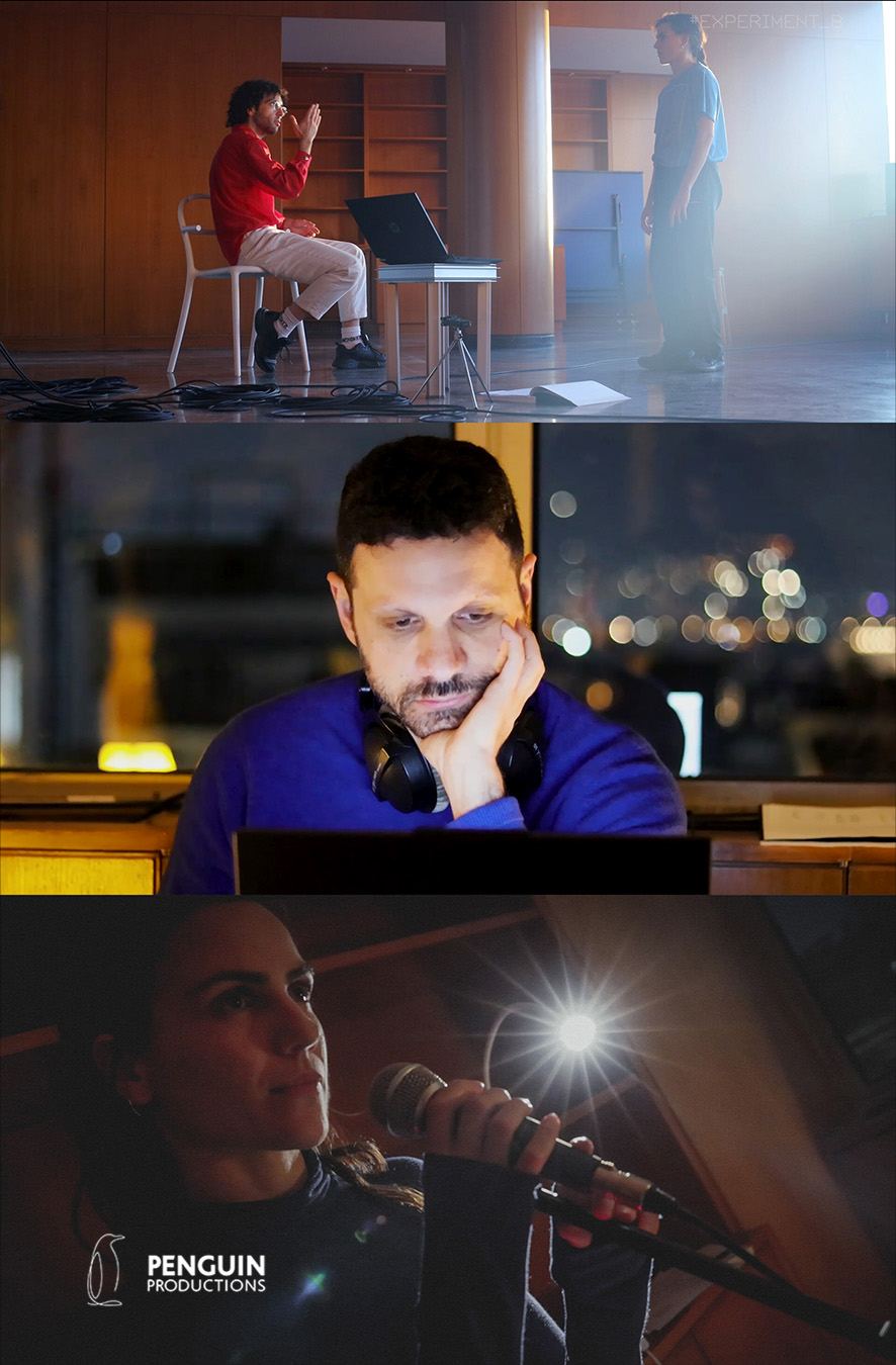 The camera examines the dynamic relationships that develop between the choreographer Angelos Papadopoulos, the acoustics researcher Konstantinos Bakoyannis and the performer Pagona Boulbasakou. Through footage of their creative process, the documentary highlights the exploration of sound and movement as forms of immersion in space, but also the experimentation with new technological tools.